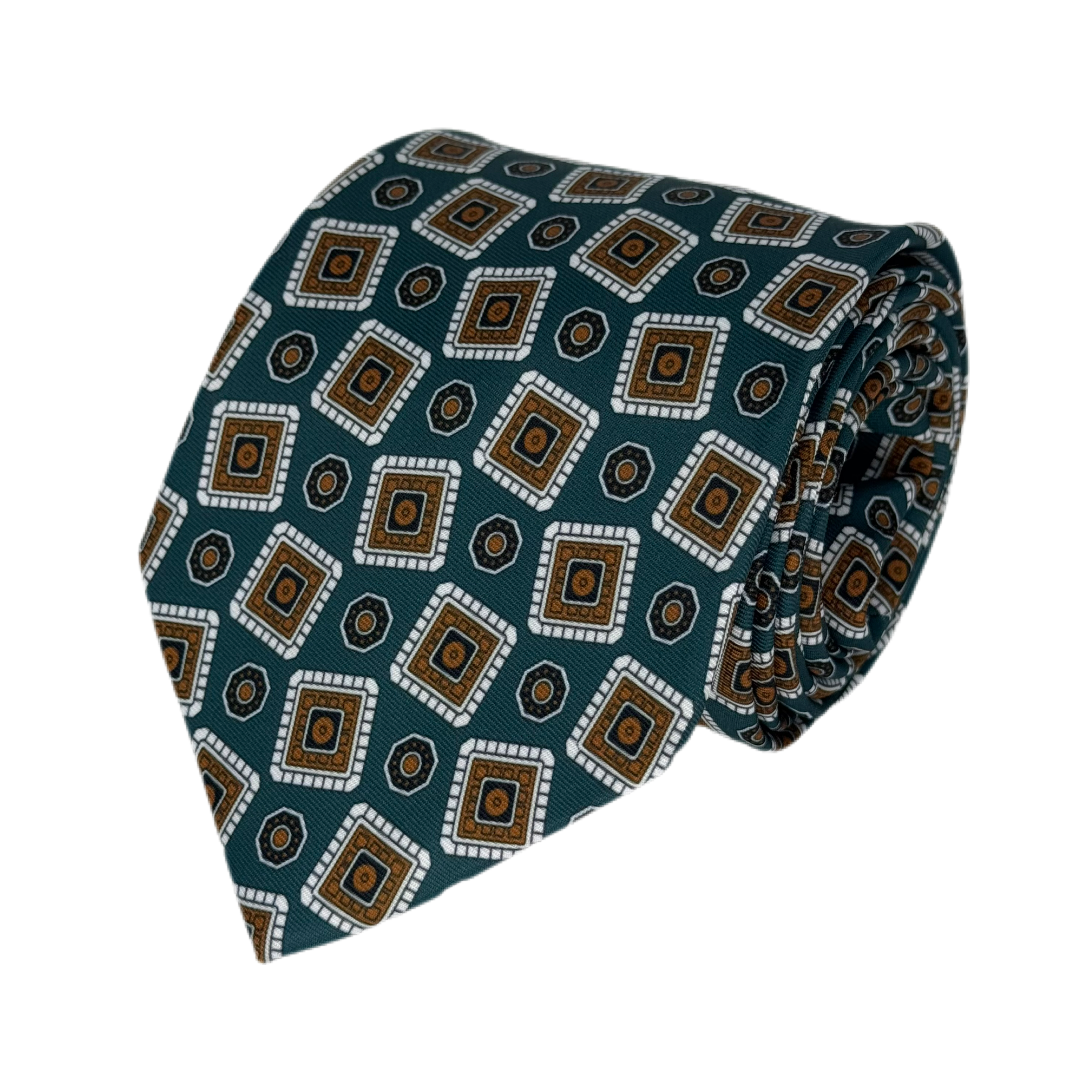 Corbata de 100% seda, con estampado vintage, un clásico reinventado para el hombre actual. Tejido de alta calidad, que aporta un tacto suave y un acabado impecable, perfecto para quienes aprecian la elegancia atemporal.