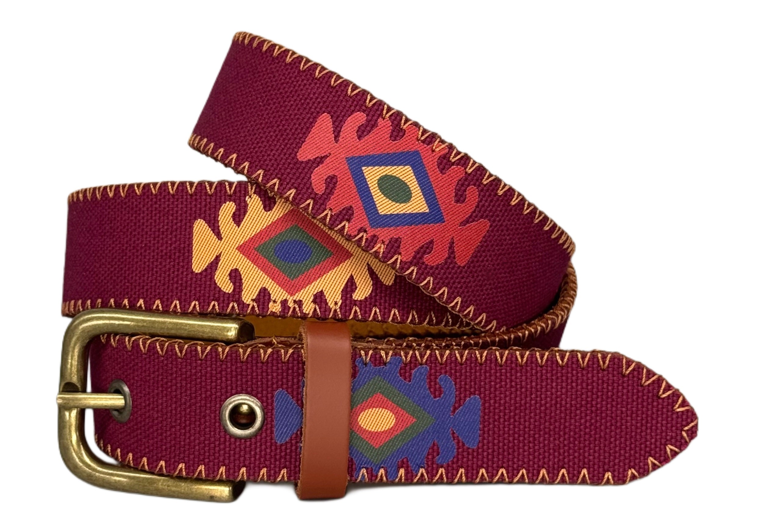Está hecho con cuero genuino y fibras de algodón teñidas con colores 100% vegetales. Cada cinturón es una pieza única, nunca igual a otra, gracias a la dedicación y creatividad artesanal que le da ese toque especial y hecho a mano.