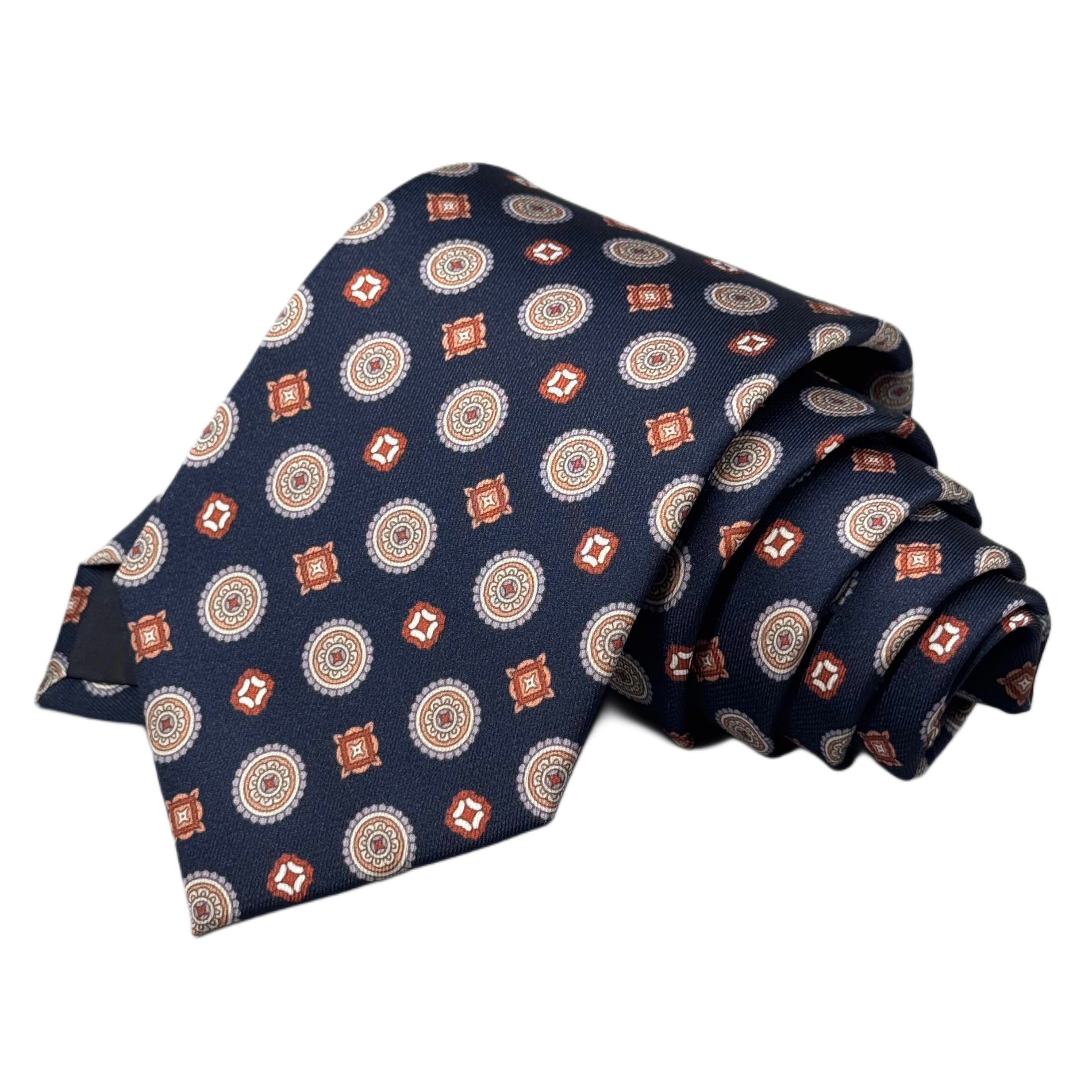 Corbata confeccionada artesanalmente con un diseño de inspiración vintage. Cada pieza está elaborada a mano, cuidando cada etapa del proceso para garantizar un acabado preciso y una caída natural que se adapta perfectamente al nudo.