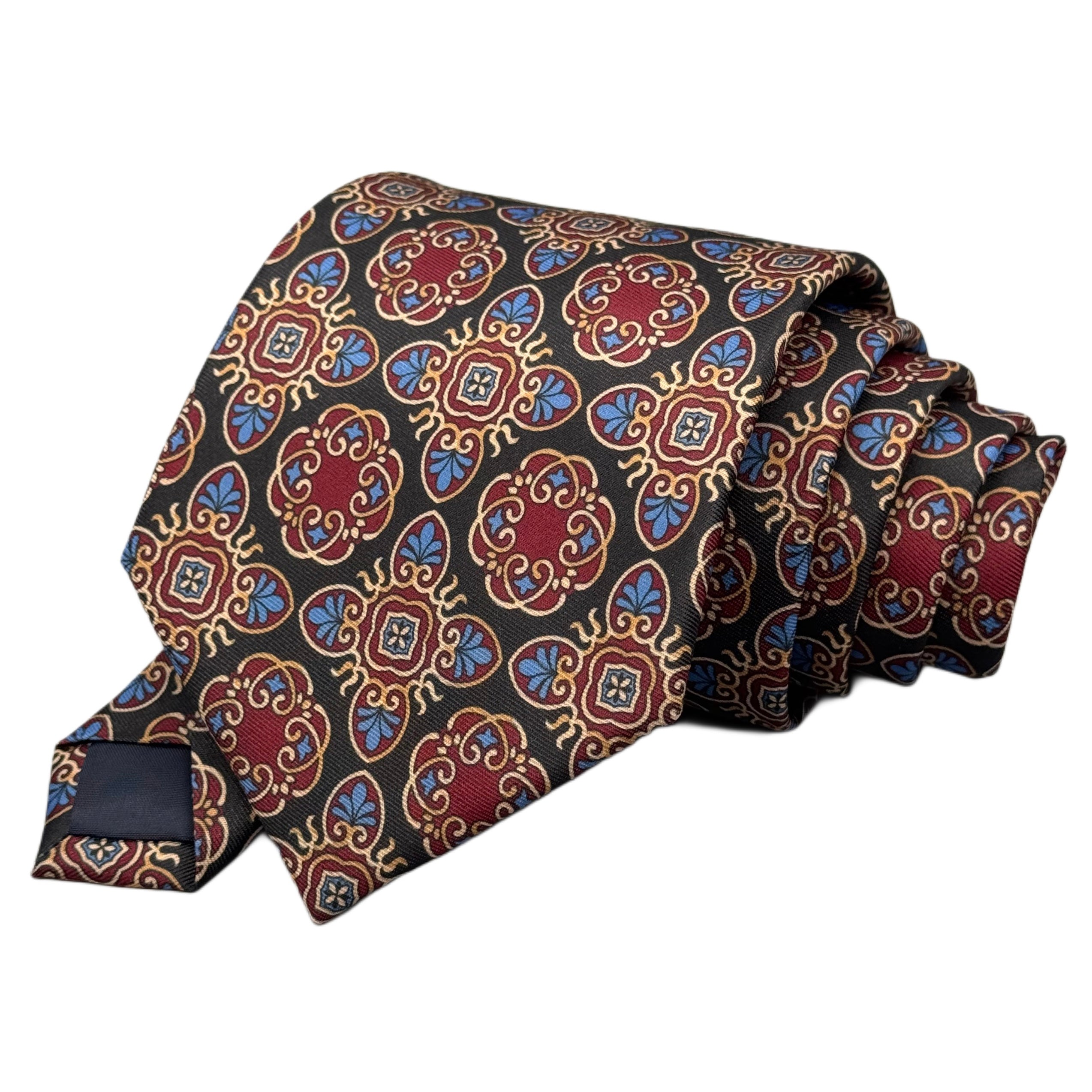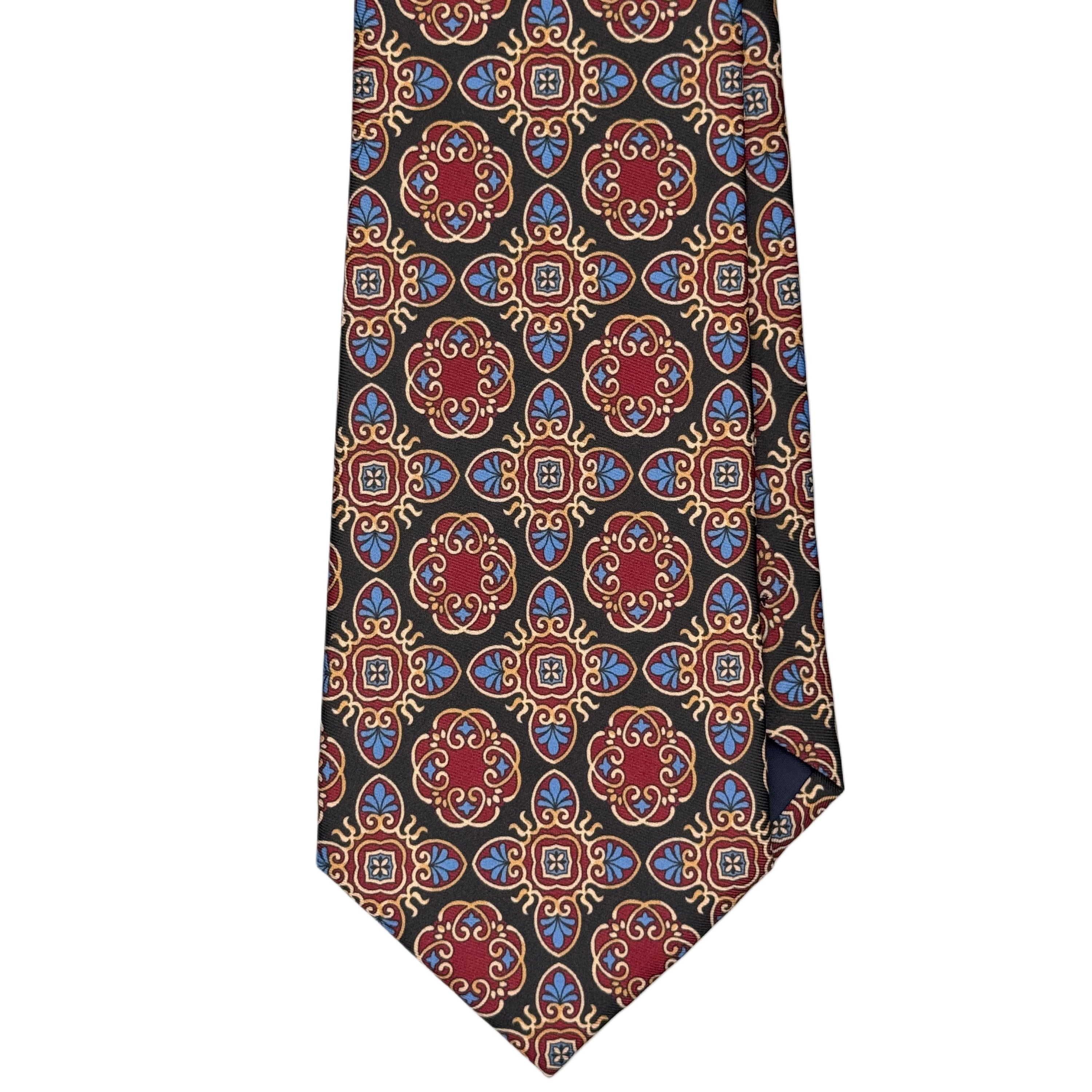 Corbata confeccionada artesanalmente con un diseño de inspiración vintage. Cada pieza está elaborada a mano, cuidando cada etapa del proceso para garantizar un acabado preciso y una caída natural que se adapta perfectamente al nudo.
