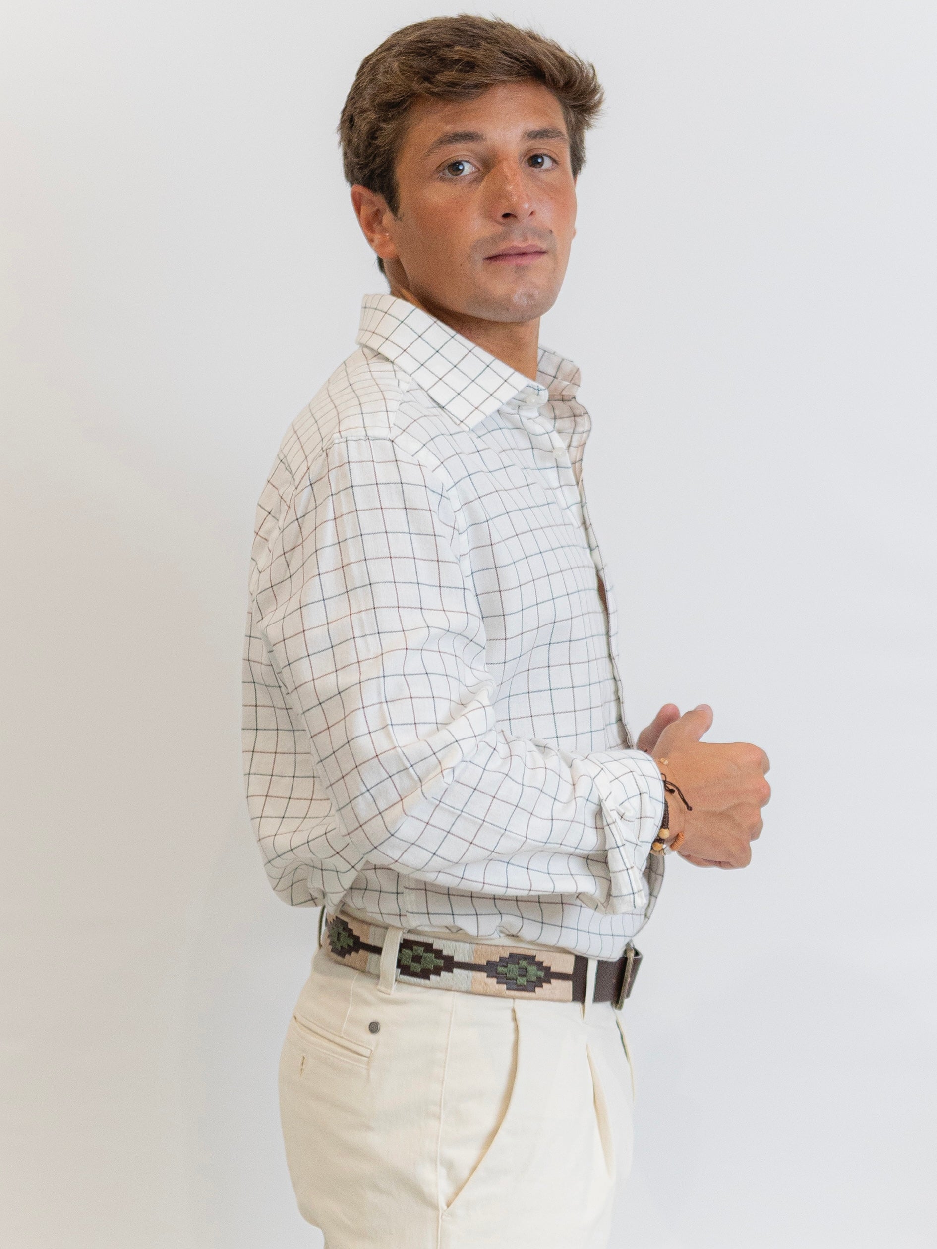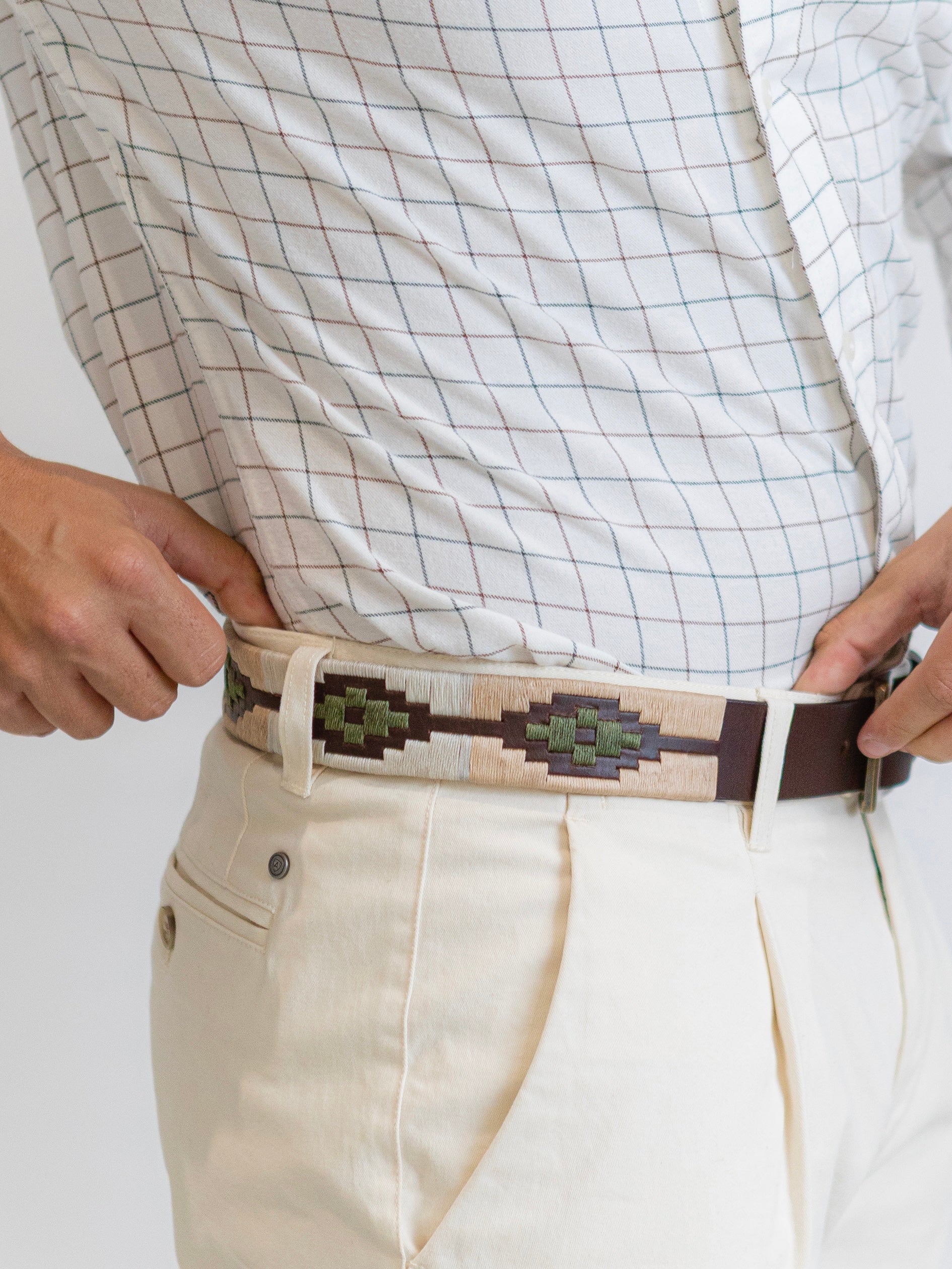 Está hecho con cuero genuino y fibras de algodón teñidas con colores 100% vegetales. Cada cinturón es una pieza única, nunca igual a otra, gracias a la dedicación y creatividad artesanal que le da ese toque especial y hecho a mano.